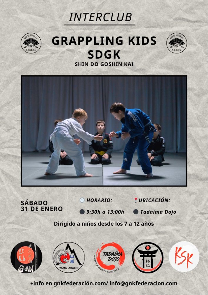 El próximo viernes 31 de enero, en las instalaciones del Tadaima Dojo, se celebrará una jornada tipo Inter Club de SDGK Grappling Kids, concebida como una actividad piloto para el desarrollo, prueba y ajuste del futuro reglamento oficial de esta modalidad dentro de la federación.